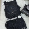 Conjunto Blogueirinha Boiadeira Maraisa Jeans Preto