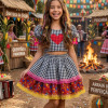 TECIDO Oxsford 100% poliester TECIDO EXTERNO  TECIDO FORRO    CAIPIRA JUNINO JUNINA JULINA SÃO JOÃO FESTA   Confeccionado em tecido misto possui forro em poliéster e algodão para não incomodar a criança e proporcionando um caimento incrível e sofisticado, possui gola redonda, comprimento médio, mangas curtas, possui elástico na cintura para melhor ajuste e blusinha com elástico nas costas para ajustar a parte posterior do conjunto completando o look dos sonhos!       * Medidas podem variar em até 4cm   * Caso queira o conjunto mais armado, recomendamos o uso do saiote ou anágua de armação, disponível no nosso site na categoria acessórios.   * Tiara vendida separadamente, disponível em nosso site na categoria acessórios.   * Calçados vendido separadamente, disponível em nosso site na categoria calçados.     * LEMBRANDO QUE PODERA HAVER VARIAÇÃO DE TONALIDADE DO PRODUTO DEPENDENDO DA TELA DO SEU DISPOSITIVO