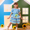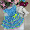 Conjunto Junino Banana Club Luxo Sofia Xadrez Azul