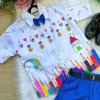 TECIDO: CAMISA MICROFIBRA 100% POLIESTERSHORTS TWILL 100 % POLIESTER Conjunto composto por: Camisa social na cor Branca com Desenhos, Gravata Borboleta Azu,Shorts na cor Azul e Cinto na Cor Preta   FORMATURA,COLORIDOS,ABC,LAPIS,AQUARELA Demais peças ou acessórios, não inclusos. Calçados Vendindos Separadamente         * LEMBRANDO QUE PODERA HAVER VARIAÇÃO DE TONALIDADE DO PRODUTO DEPENDENDO DA TELA DO SEU DISPOSITIVO