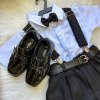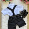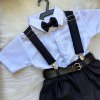 Este conjunto social infantil é a escolha perfeita para deixar os pequenos elegantes e confortáveis em eventos como casamentos, batizados, aniversários, formaturas e cerimônias em geral. Com um visual sofisticado, ele é ideal para quem busca estilo com praticidade. Detalhes do Produto: Camisa social branca de manga curta, confeccionada em microfibra 100% poliéster, com toque macio e caimento leve. Short preto em twill 100% poliéster, com acabamento moderno na barra dobrada. Acompanha gravata borboleta preta, suspensório preto com regulagem e cinto ajustável preto com fivela metálica. Itens Inclusos:CamisaShortGravata borboletaSuspensórioCinto Calçado não incluso – vendido separadamente. Disponivel em nosso site na categoria calçados meninosAs tonalidades das peças podem variar de acordo com as configurações de tela do seu dispositivo.Para garantir o ajuste ideal, consulte sempre a nossa tabela de medidas antes de finalizar a compra. As medidas podem apresentar pequenas variações conforme o lote de fabricação.
