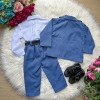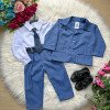 TERNO LISTRADO: TECIDO 100% POLIESTER ALFAIATARIA MALIBU   CALÇA LISA: TECIDO  MICROFIBRA 100% POLIESTER  CAMISA BRANCA SOCIAL MANGA LONGA: TECIDO  MICROFIBRA 100% POLIESTER      Conjunto composto por: Camisa Social na cor Branca Manga Longa, Gravata  na cor Azul com detalhes, Cinto na cor Preta, Calça Lisa na cor Azul e Blaizer na cor Azul listrado Demais peças ou acessórios, não inclusos.    CASAMENTO,NOIVINHO,PAJEM,BATIZADO    Calçados Vendindos Separadamente    * LEMBRANDO QUE PODERA HAVER VARIAÇÃO DE TONALIDADE DO PRODUTO DEPENDENDO DA TELA DO SEU DISPOSITIVO