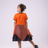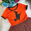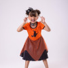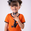 Fantasia Temática Halloween – Bruxinha Laranja com Tule  Encante a criançada neste Halloween com essa fantasia super estilosa e divertida!O modelo traz a magia da data com estampa de bruxinha voando na parte superior e saia de tule laranja com brilho, sobreposta a tecido preto que dá um charme extra. O acabamento com gola preta e mangas curtinhas deixa o look ainda mais gracioso e confortável. Destaques do modelo: Fantasia temática Halloween  Estampa de bruxinha  Saia com tule laranja brilhante sobre tecido preto Gola e mangas com acabamento preto Confortável e cheia de movimento   Ideal para festas, eventos escolares, truques ou travessuras e sessões de fotos inesquecíveis!  Informações Importantes As medidas podem variar em até 2cm. Recomendamos sempre consultar a tabela de medidas antes da compra para evitar erros. Cuidado ao vestir: não forçar a entrada ou puxar o tecido, pois pode esgarçar a costura ➝ Não realizaremos troca por mau uso. Tiara e outros acessórios não acompanham o produto, mas estão disponíveis em nosso site. Calçado vendido separadamente, disponível na categoria Calçados. As cores do produto podem sofrer variações de tonalidade conforme a configuração da tela do seu dispositivo.