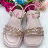 Delicada, confortável e cheia de brilho! Essa sandália é o acessório perfeito para compor looks elegantes e sofisticados das pequenas princesas. Detalhes do modelo: Cor rosé/nude, super versátil e fácil de combinar. Tiras finas com aplicações em strass multicolorido, que iluminam o visual a cada passo. Fechamento com fivela ajustável, garantindo segurança e conforto. Perfeita para festas, aniversários, daminhas e ocasiões especiais, sem abrir mão do conforto.
