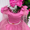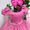 Tecido: Techno Sport Forro/ Tule: 100% PoliesterUm modelo digno de princesa, criado para transformar cada momento especial em um verdadeiro conto de fadas. Detalhes que encantam: Laço nas costas: um toque cheio de charme. Lastex ajustável: garante caimento perfeito e máximo conforto. Tule sobre os ombros: sofisticação e delicadeza em cada movimento. Cinto em pérolas: detalhe sutil que valoriza a cintura e completa o look.Perfeito para casamentos, aniversários e eventos onde sua pequena deve ser o centro das atenções.  Atenção: As medidas podem variar em até 2cm. Recomendamos sempre consultar a tabela de medidas antes da compra para evitar erros. Para um volume extra, indicamos o uso de saiote de armação, vendido separadamente na categoria acessórios. Tiara e outros acessórios não acompanham o produto, mas estão disponíveis em nosso site. Calçado vendido separadamente, disponível na seção de calçados.As cores do produto podem sofrer variações de tonalidade conforme a configuração da tela do seu dispositivo.