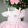 O Vestido Martina foi pensado para deixar as pequenas ainda mais encantadoras, unindo conforto, elegância e aquele toque de conto de fadas. Detalhes que encantam: Busto em lese bordado, com delicados desenhos florais, trazendo textura e romantismo à peça; Decote com babado duplo e acabamento delicado, que valoriza o caimento e adiciona volume suave; Alças finas fixas, que garantem sustentação sem perder a leveza do modelo; Laço lateral grande com aplicação de strass, dando um toque de brilho sutil e sofisticado; Cinto de pérolas aplicada na cintura, realçando a silhueta e complementando o visual com um ar clássico; Saia dupla com camada de tule suave, proporcionando leve volume e fluidez ao andar; Forro interno macio, garantindo conforto durante todo o uso; Costas com lastex, o que permite um ajuste perfeito ao corpo e maior liberdade de movimento; Laço grande nas costas, finalizando com charme e elegância, ideal para fotos e momentos especiais. Composição: Corpo: Tecnosport 100% Poliéster Busto: Lese 100% Poliéster Forro: Poliéster macio e respirável 100% poliester Perfeito para: Festas e aniversários Batizados Ensaios fotográficos Eventos formais e especiais Informações Importantes As medidas podem variar em até 2cm. Recomendamos sempre consultar a tabela de medidas antes da compra para evitar erros. Para um volume extra, indicamos o uso de saiote de armação, vendido separadamente na categoria Acessórios. Tiara e outros acessórios não acompanham o produto, mas estão disponíveis em nosso site. Calçado vendido separadamente, disponível na categoria Calçados As cores do produto podem sofrer variações de tonalidade conforme a configuração da tela do seu dispositivo.