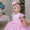 Confeccionado em tecido misto possui forro em poliéster e algodão para não incomodar a criança e proporcionando um caimento incrível e sofisticado, possui gola redonda, comprimento médio, mangas curtas, possui elástico nas costas para melhor ajuste, acabamento com lindo laço na parte posterior do vestido completa o look dos sonhos!   * Medidas podem variar em até 4cm * Caso queira o vestido mais armado, recomendamos o uso do saiote ou anágua de armação, disponível no nosso site na categoria acessórios. * Tiara vendida separadamente, disponível em nosso site na categoria acessórios. * Calçados vendido separadamente, disponível em nosso site na categoria calçados. * LEMBRANDO QUE PODERA HAVER VARIAÇÃO DE TONALIDADE DO PRODUTO DEPENDENDO DA TELA DO SEU DISPOSITIVO