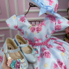 Confeccionado em tecido misto possui forro em poliéster e algodão para não incomodar a criança e proporcionando um caimento incrível e sofisticado, possui gola redonda, comprimento médio, mangas curtas, possui elástico nas costas para melhor ajuste, acabamento com lindo laço na parte posterior do vestido completa o look dos sonhos!   * Medidas podem variar em até 4cm. * Caso queira o vestido mais armado, recomendamos o uso do saiote ou anágua de armação, disponível no nosso site na categoria acessórios.* Tiara vendida separadamente, disponível em nosso site na categoria acessórios. * Calçados vendido separadamente, disponível em nosso site na categoria calçados.* Obs: Acompanha Chapeu   * LEMBRANDO QUE PODERA HAVER VARIAÇÃO DE TONALIDADE DO PRODUTO DEPENDENDO DA TELA DO SEU DISPOSITIVO