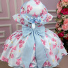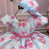Vestido Miss Cherry Chapeu Azul Bebe Flores e Borboletas