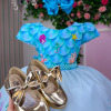 Confeccionado em tecido misto possui forro em poliéster e algodão para não machucar a criança e proporcionando um caimento incrível e sofisticado, possui gola redonda, comprimento médio, mangas curtas, possui elástico nas costas para melhor ajuste, acabamento com lindo laço na parte posterior do vestido completa o look dos sonhos! * Medidas podem variar em até 4cm * Caso queira o vestido mais armado, recomendamos o uso do saiote ou anágua de armação, disponível no nosso site na categoria acessórios. * Tiara vendida separadamente, disponível em nosso site na categoria acessórios.*Calçados Vendidos Separadamente , disponível em nosso site na categoria calçados.