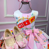 TECIDO MICROFIBRA 100% Confeccionado em tecido misto possui forro em poliéster e algodão para não incomodar a criança e proporcionando um caimento incrível e sofisticado, possui gola redonda, comprimento médio, mangas curtas, apliques de laço e perolás,  contém, também, elástico nas costas para melhor ajuste.   ROSINHA, ROSA, MUSICA, CRIANCAS, REGATA,3 PALAVRAS,PALAVRINHA,TRES,TRÊS   * Medidas podem variar em até 4cm. * Caso queira o vestido mais armado, recomendamos o uso do saiote ou anágua de armação, disponível no nosso site na categoria acessórios. * Tiara vendida separadamente, disponível em nosso site na categoria acessórios. * Calçados vendido separadamente, disponível em nosso site na categoria calçados.   * LEMBRANDO QUE PODERA HAVER VARIAÇÃO DE TONALIDADE DO PRODUTO DEPENDENDO DA TELA DO SEU DISPOSITIVO