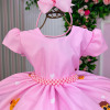 TECIDO 100% POLIÉSTER Confeccionado em tecido misto possui forro em poliéster e algodão para não incomodar a criança e proporcionando um caimento incrível e sofisticado, possui gola redonda, comprimento médio, mangas curtas, contém, também, elástico nas costas para melhor ajuste, acabamento com lindo laço na parte posterior do vestido completa o look dos sonhos! * Medidas podem variar em até 4cm. * Caso queira o vestido mais armado, recomendamos o uso do saiote ou anágua de armação, disponível no nosso site na categoria acessórios. * Tiara vendida separadamente, disponível em nosso site na categoria acessórios. * Calçados vendido separadamente, disponível em nosso site na categoria calçados. * LEMBRANDO QUE PODERA HAVER VARIAÇÃO DE TONALIDADE DO PRODUTO DEPENDENDO DA TELA DO SEU DISPOSITIVO